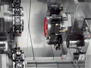 The ability to work simultaneously with the left and right spindles using the upper and lower turrets with Y-axis function means that complete and reverse machining of complex parts can be done simply and in a short time.